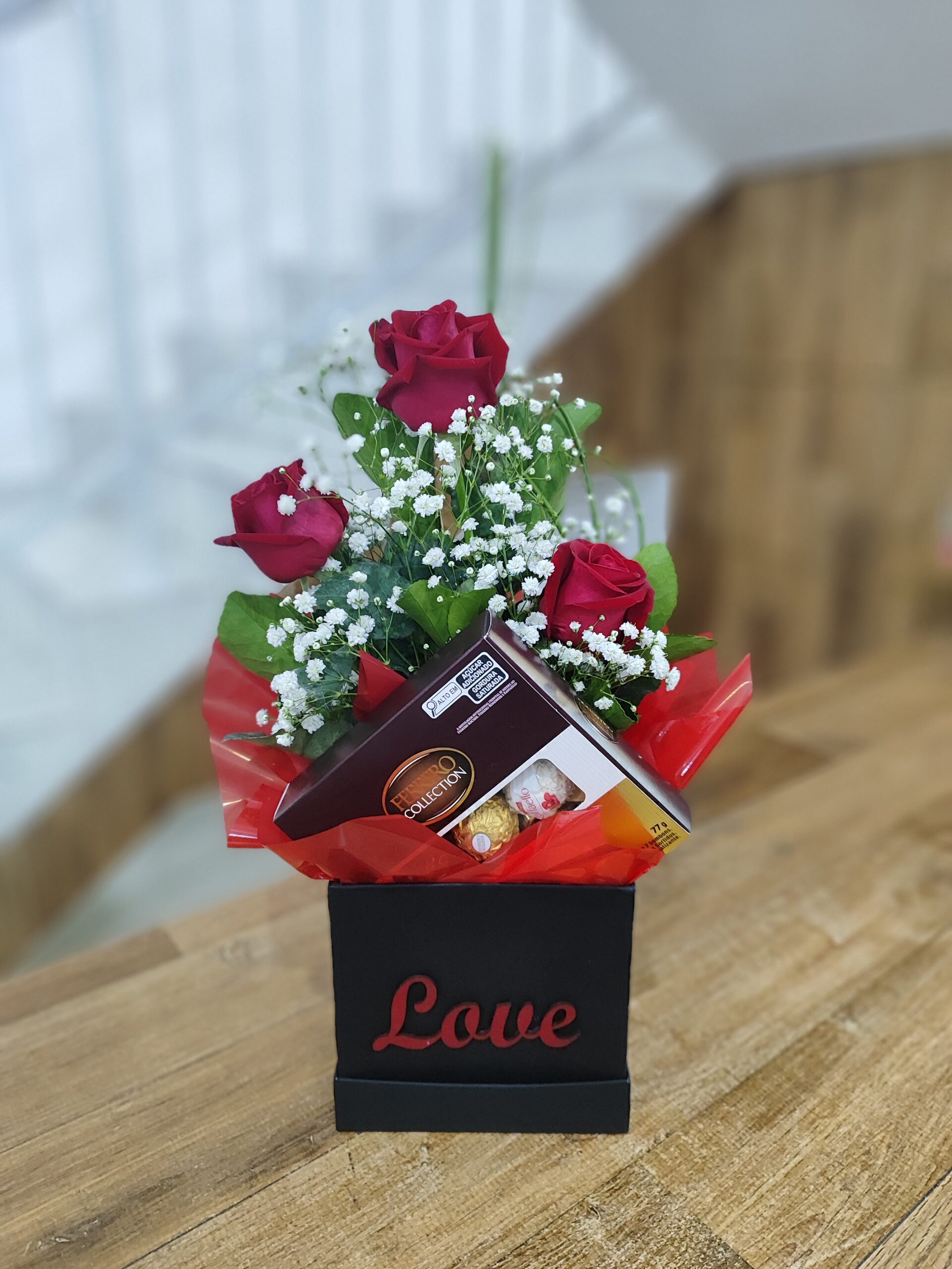 Elegância e sabor em um só gesto! Uma composição que une a intensidade das rosas vermelhas à sofisticação da linha Ferrero Collection. Presente ideal para declarar seu amor, celebrar um aniversário de namoro ou simplesmente tornar o dia de alguém inesquecível.